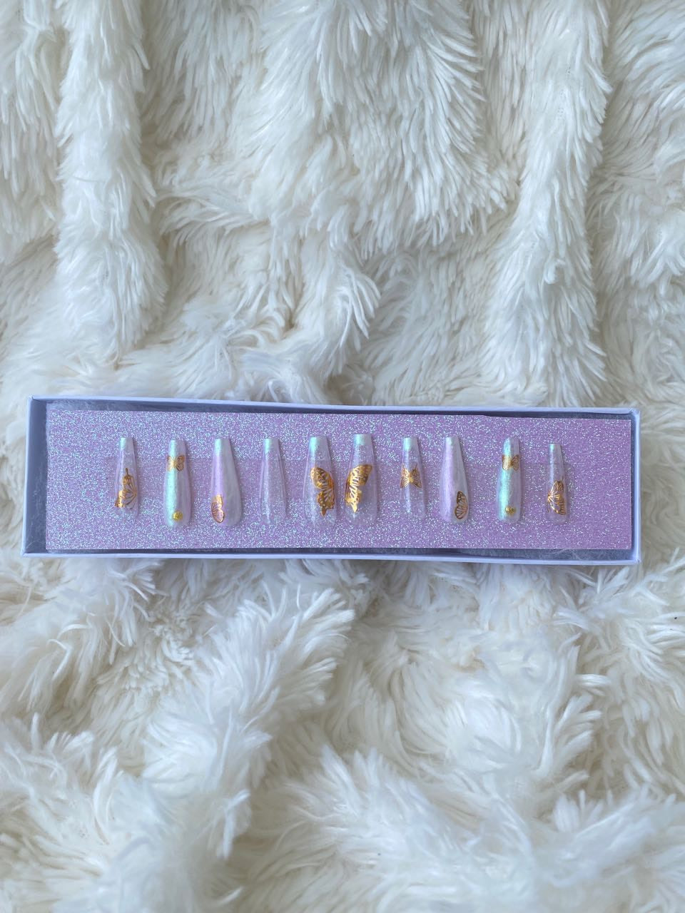 "Fairy Gawd Motha" Clear Iridescent Long Coffin Press-On Nails | Set T24