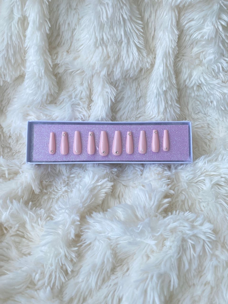 "Diamonds & Pearls " Long Pink Coffin Press On Nails | Iridescent Underside! Set T22