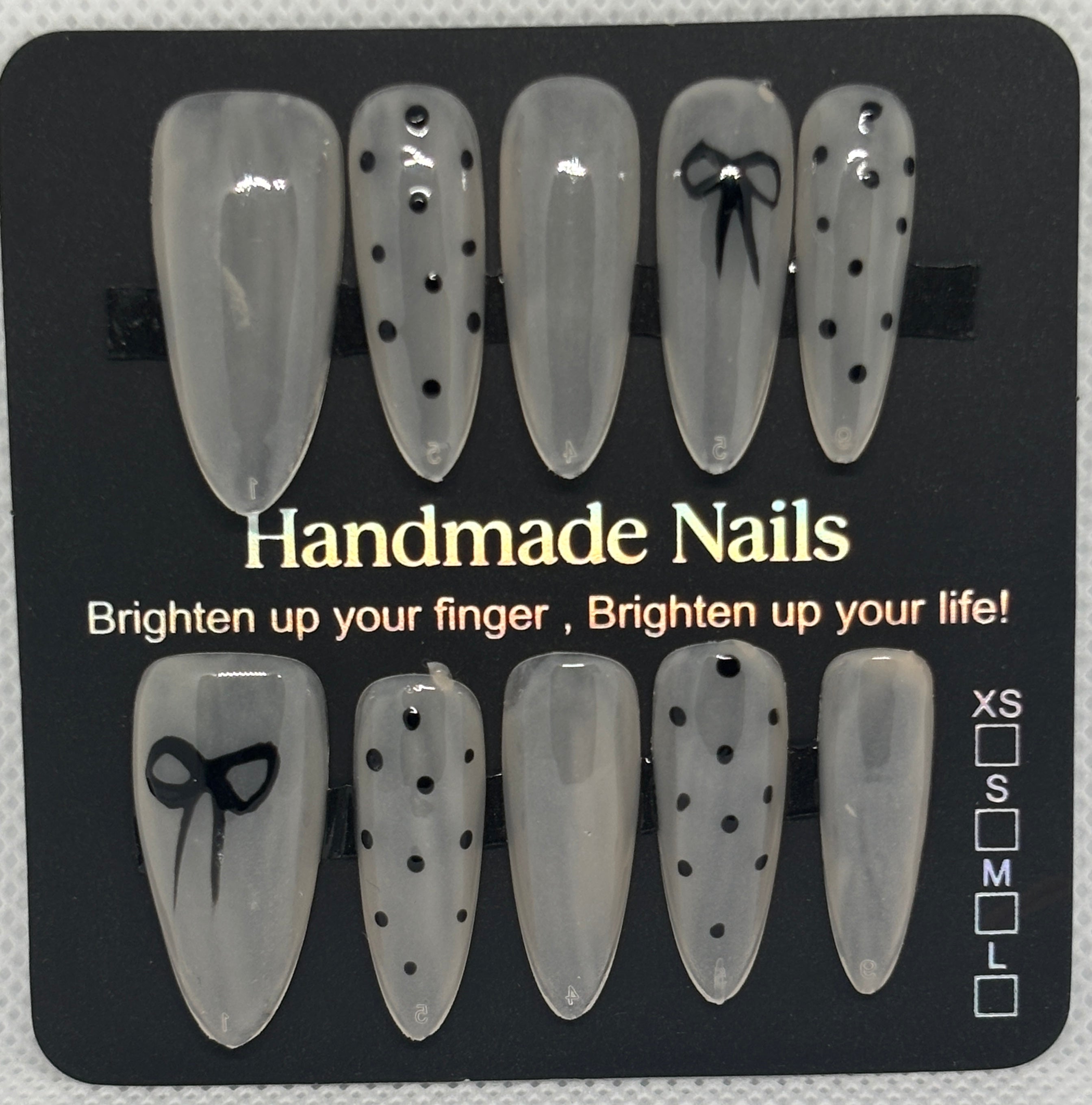 Nailstry's All Tied Up set is a part of the Handmade collection featuring sweet black and white polka dots and ribbons.