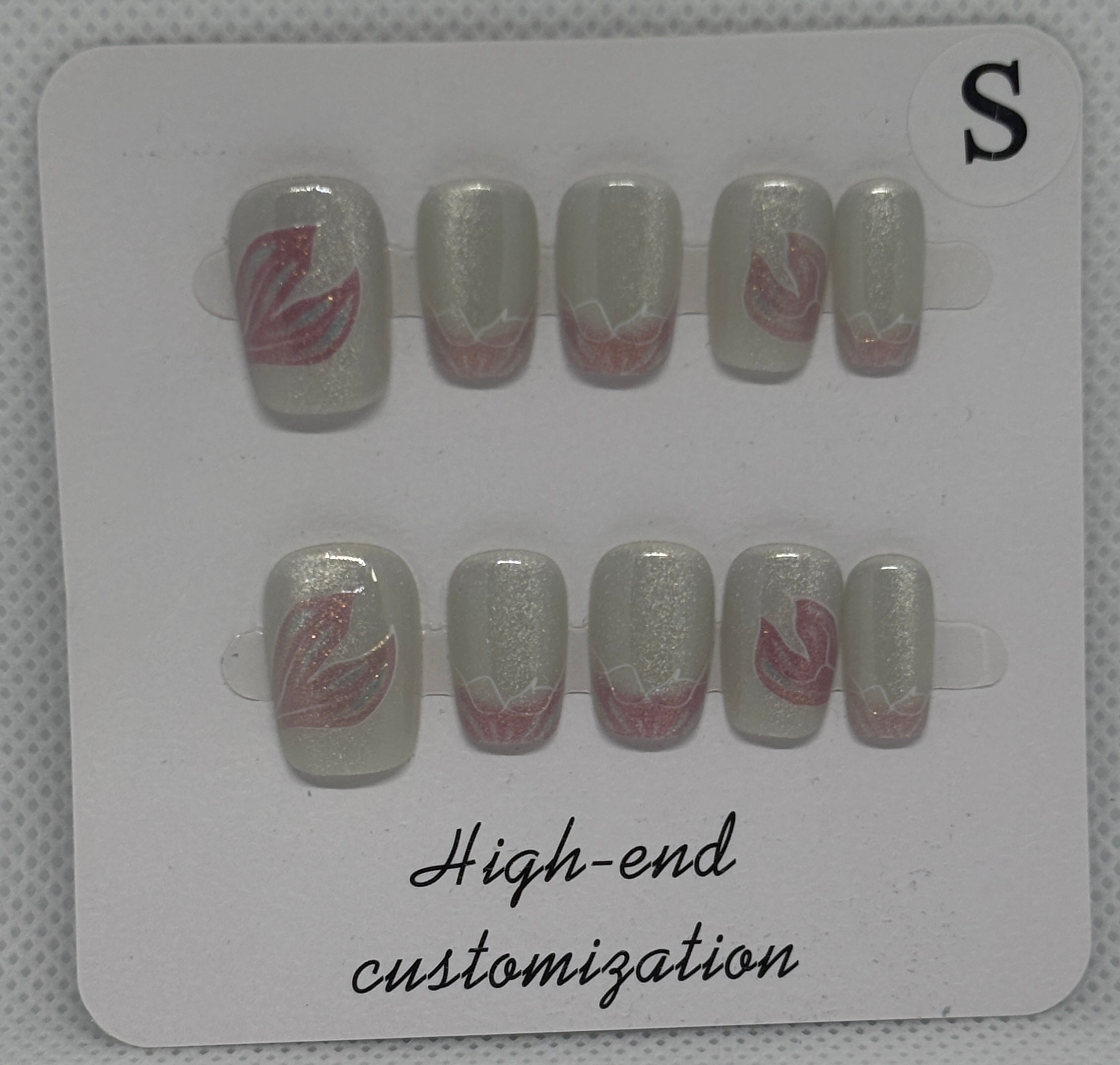 Nailstry's Pink Mermaid Mirage set is a part of the Handmade collection featuring ivory tones and baby pink accents.
