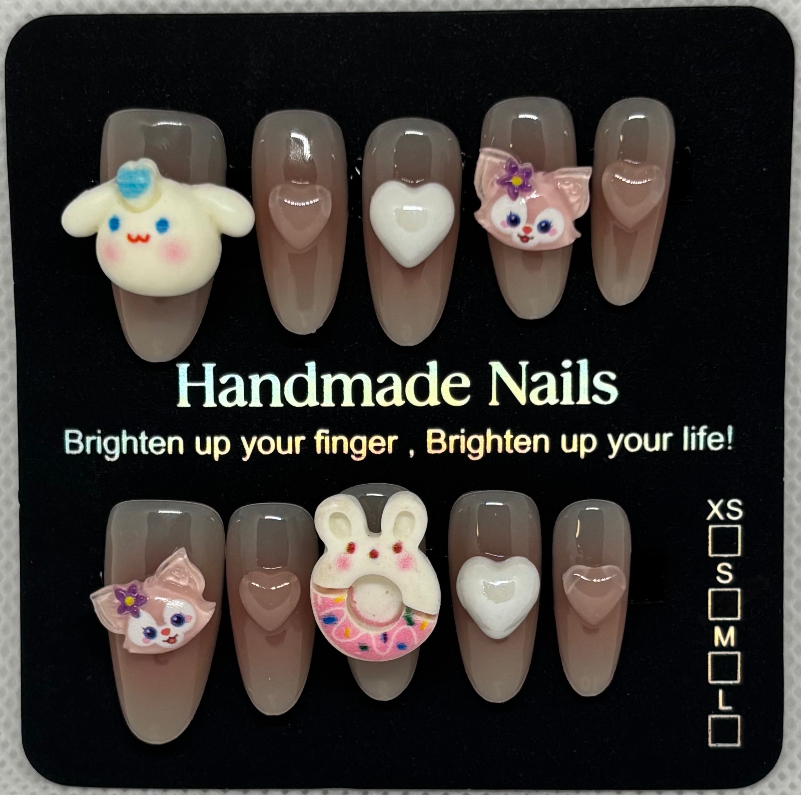 Nailstry's Cutie set is a part of the Handmade collection featuring a glossy mocha tones topped with pastel hearts and plush friends