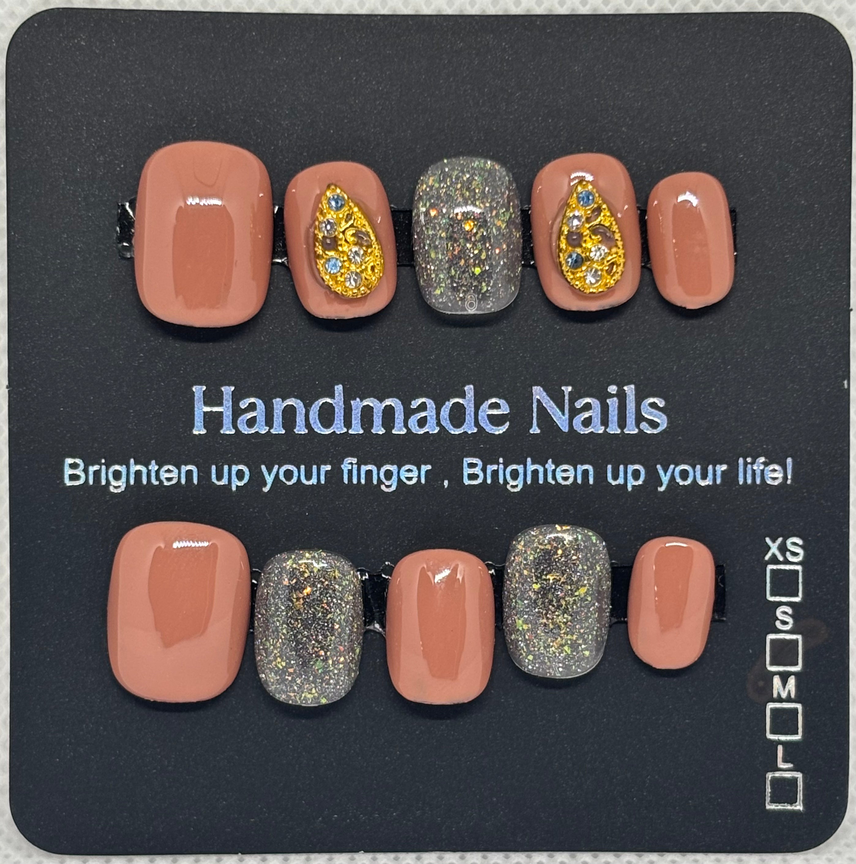 Nailstry's Fiesta set is a part of the Handmade collection featuring a fiery mix of warm terracotta and golden sparkle.
