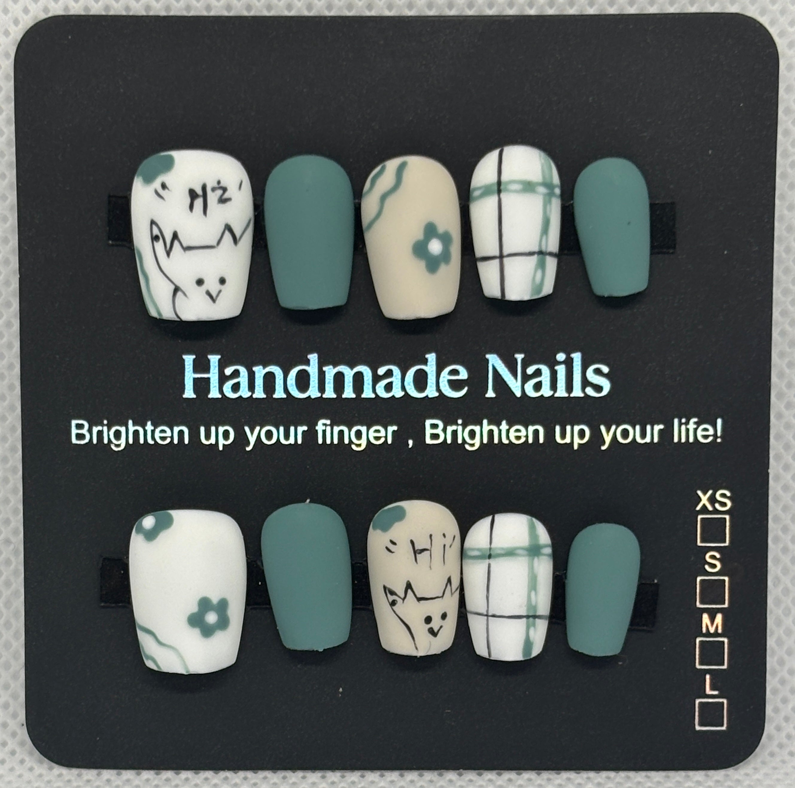 Nailstry's Mint set is a part of the Handmade collection featuring this matte mix of green, cream, and simple line art adding a modern twist.