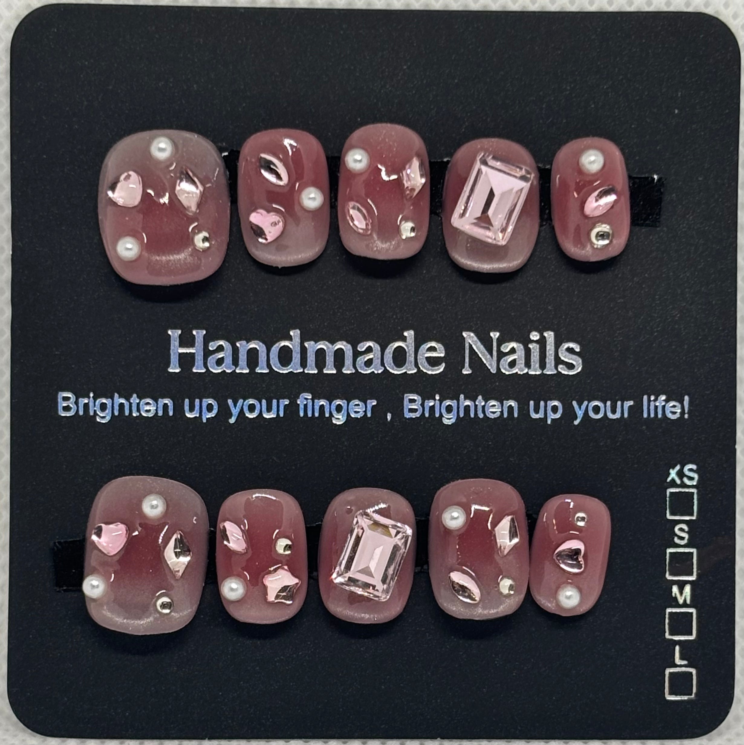 Nailstry's Pinky set is a part of the Handmade collection featuring romantic pink hues adorned with dainty gems and pearls.