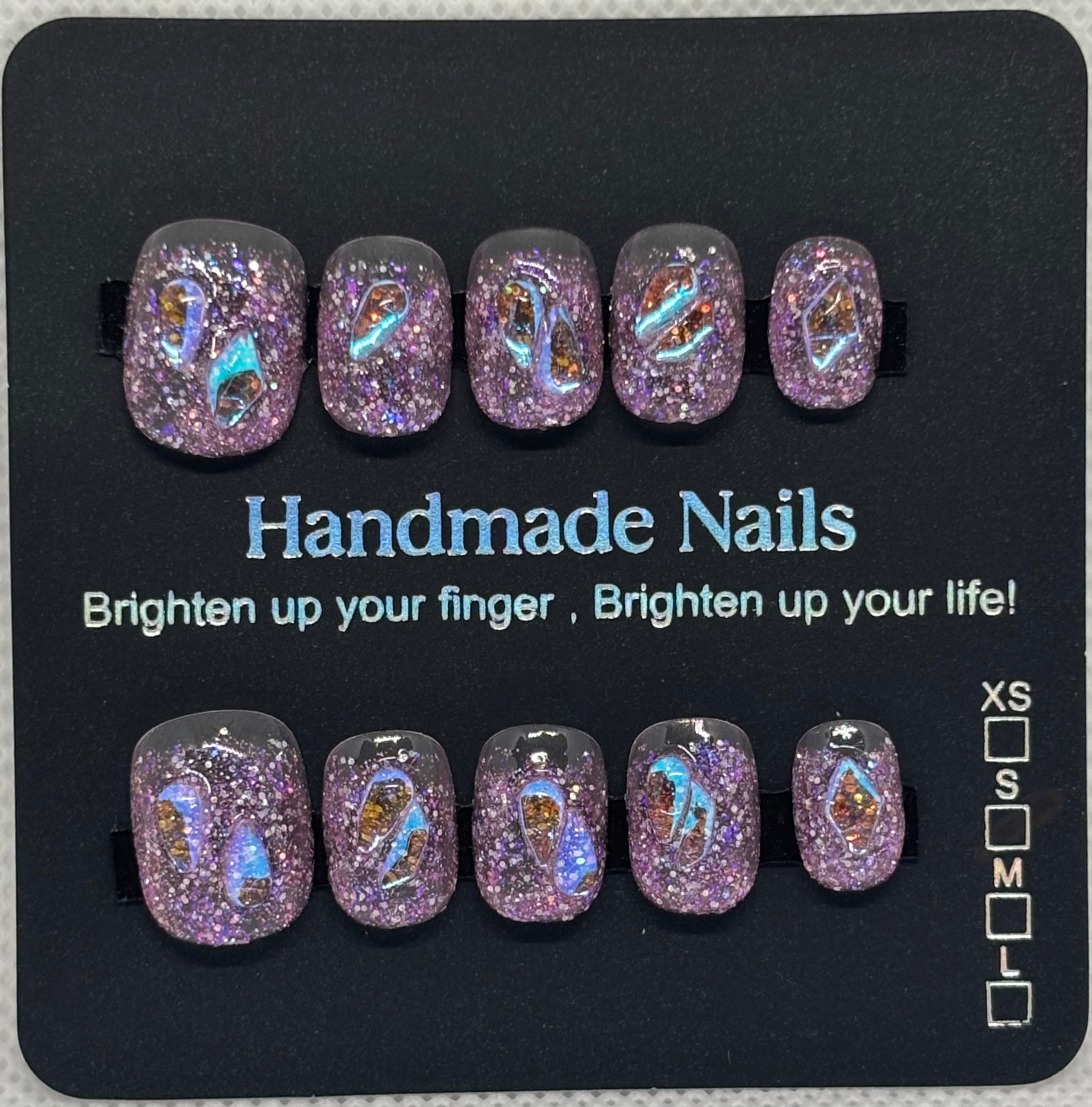 Nailstry's Disco set is a part of the Handmade collection featuring a deep violet sparkle infused with holographic brilliance.