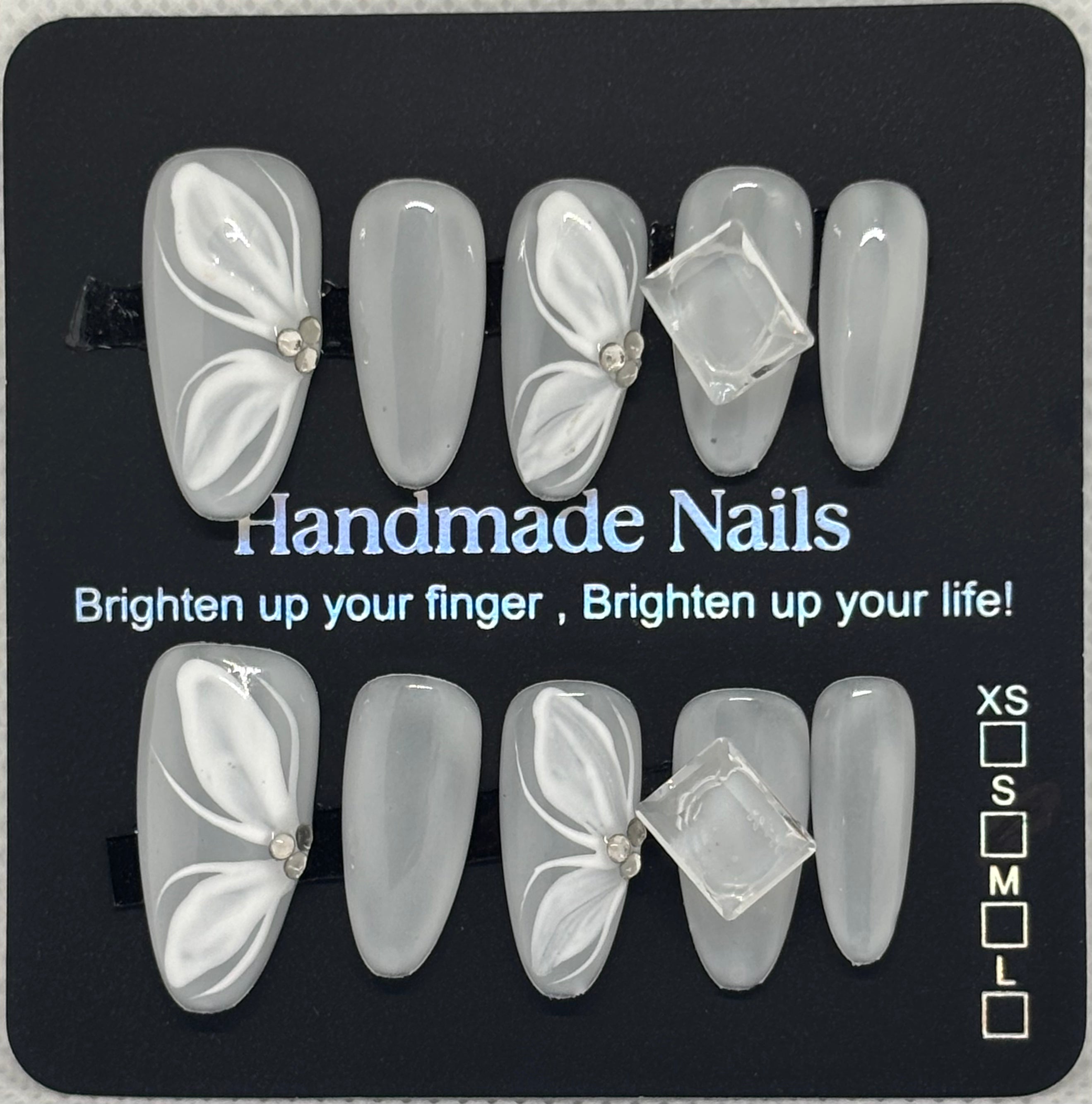 Nailstry's Satin Flower set is a part of the Handmade collection featuring crystal detail on a glossy white base.